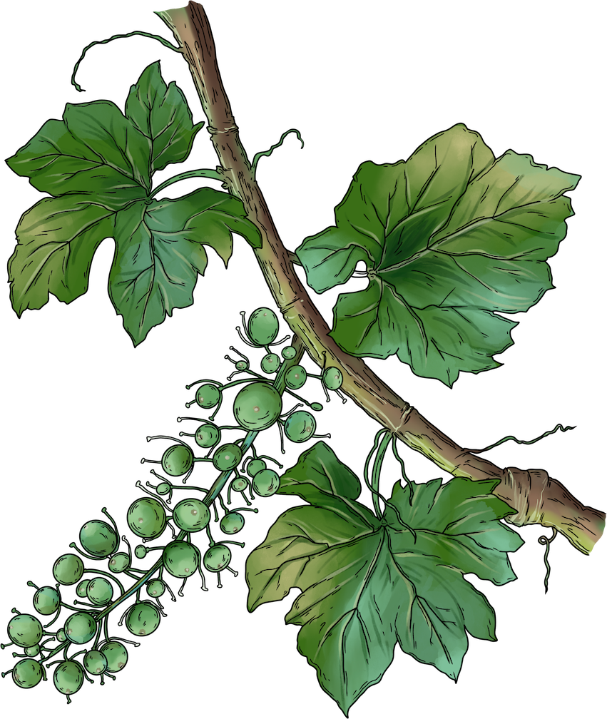 In late spring, the flowers fertilize to create fruit. It is not necessarily a one-to-one conversion from flower to fruit - some flowers will never become fruit. These early fruits are far from anything you would want to eat or make wine out of. They are very herbal in taste, bitter, and hard. The later stages bring on the characteristics that we think of as grapes. Both white and red wine varietals start out as green colored grapes.
